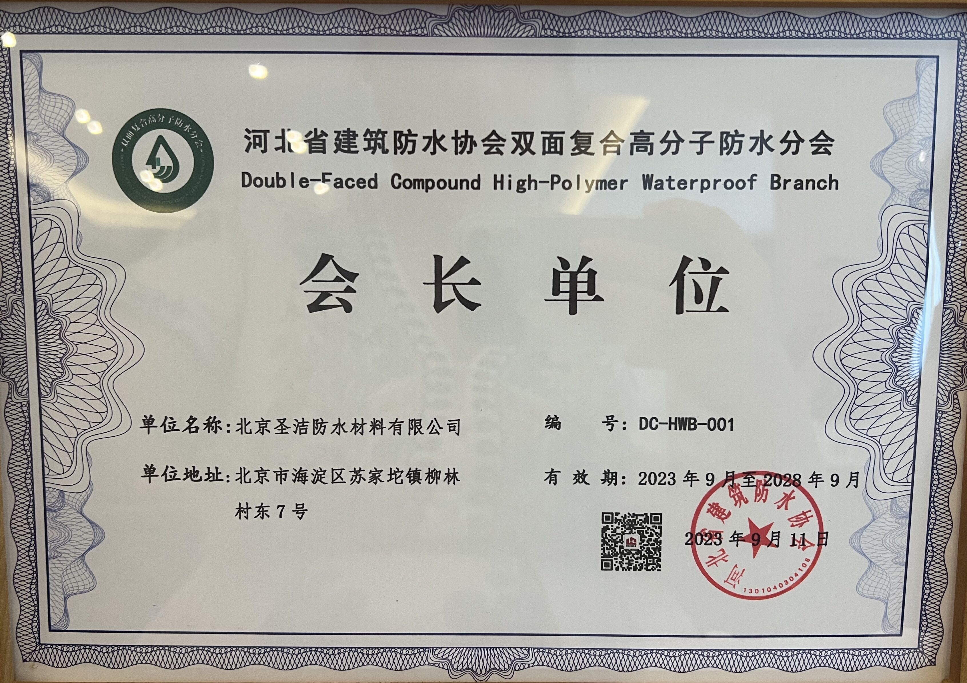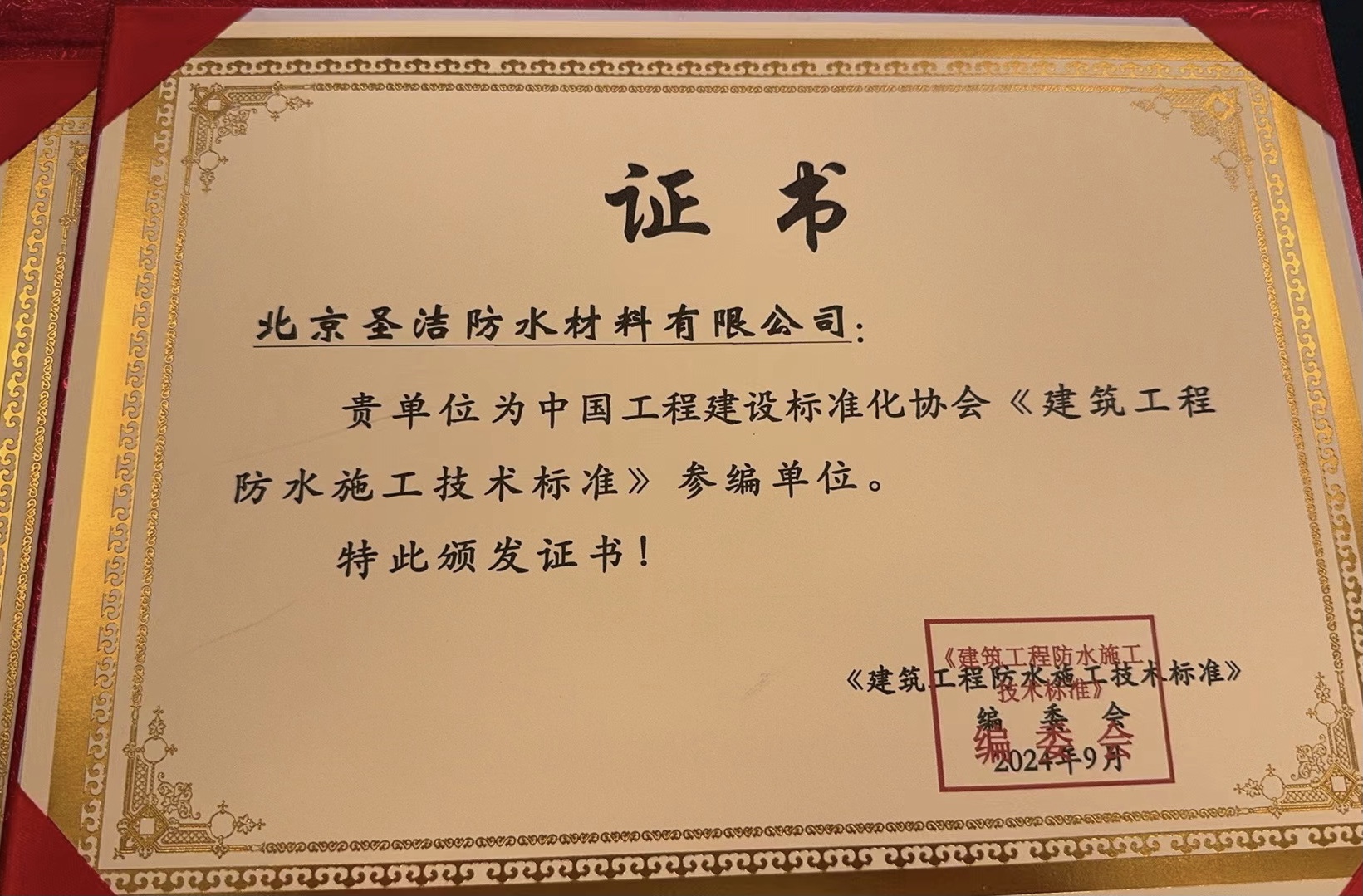 北京圣潔防水材料有限公司成立于1999年,注冊資金2.53億元。致力于系統解決防水問題的探索和研究,經過二十多年的積累與沉淀,圣潔防水已發展成為集產品研發、生產、銷售、施工于一體的規模化公司,是中國防水二十強企業,擁有國家專業防水一級資質。 圣潔防水生產基地占地面積2萬平米,全體員工320人,其中施工人員280人,為員工提供五險保障,公司是中國建筑防水協會常務理事單位、中國建筑業協會建筑防水分會、中國建筑學會、中國質量檢驗協會建材專業委員會會員單位,通過了ISO9001國際質量體系認證、ISO14001環境管理認證。被中國建材市場協會譽為“全國建材系統質量、服務、信譽AAA企業”。歷年國家標準《地下工程防水技術規范》、《地下防水工程質量驗收規范》和《屋面工程技術規范》、《屋面工程質量驗收規范》的參編單位,截至目前為止,圣潔防水主編或參編的國標、行標、地標、團標已達106本。